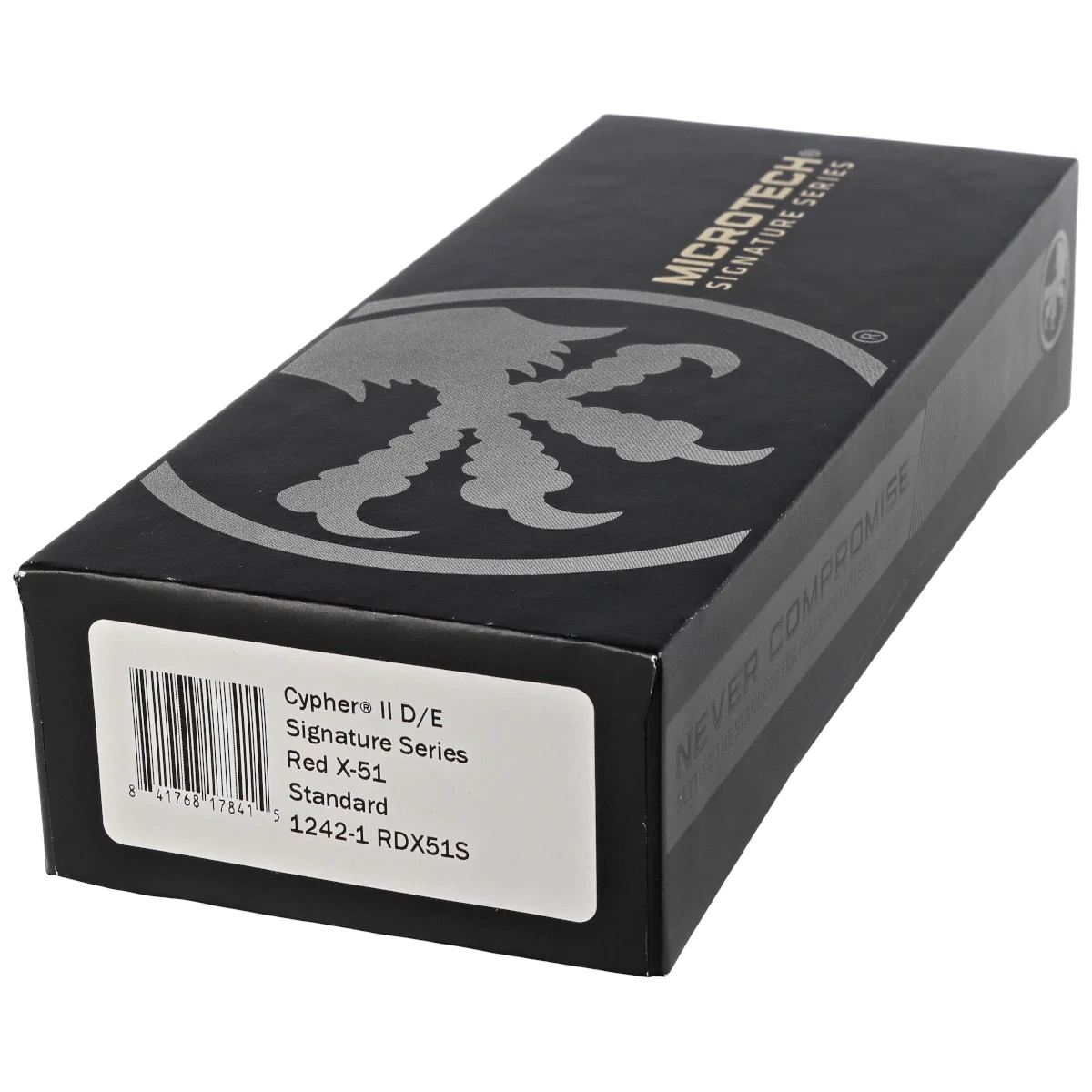 Nóż automatyczny OTF Microtech Cypher II D/E Signature Red X-51 Aluminium, Distressed Black M390MK (1242-1RDX51S)