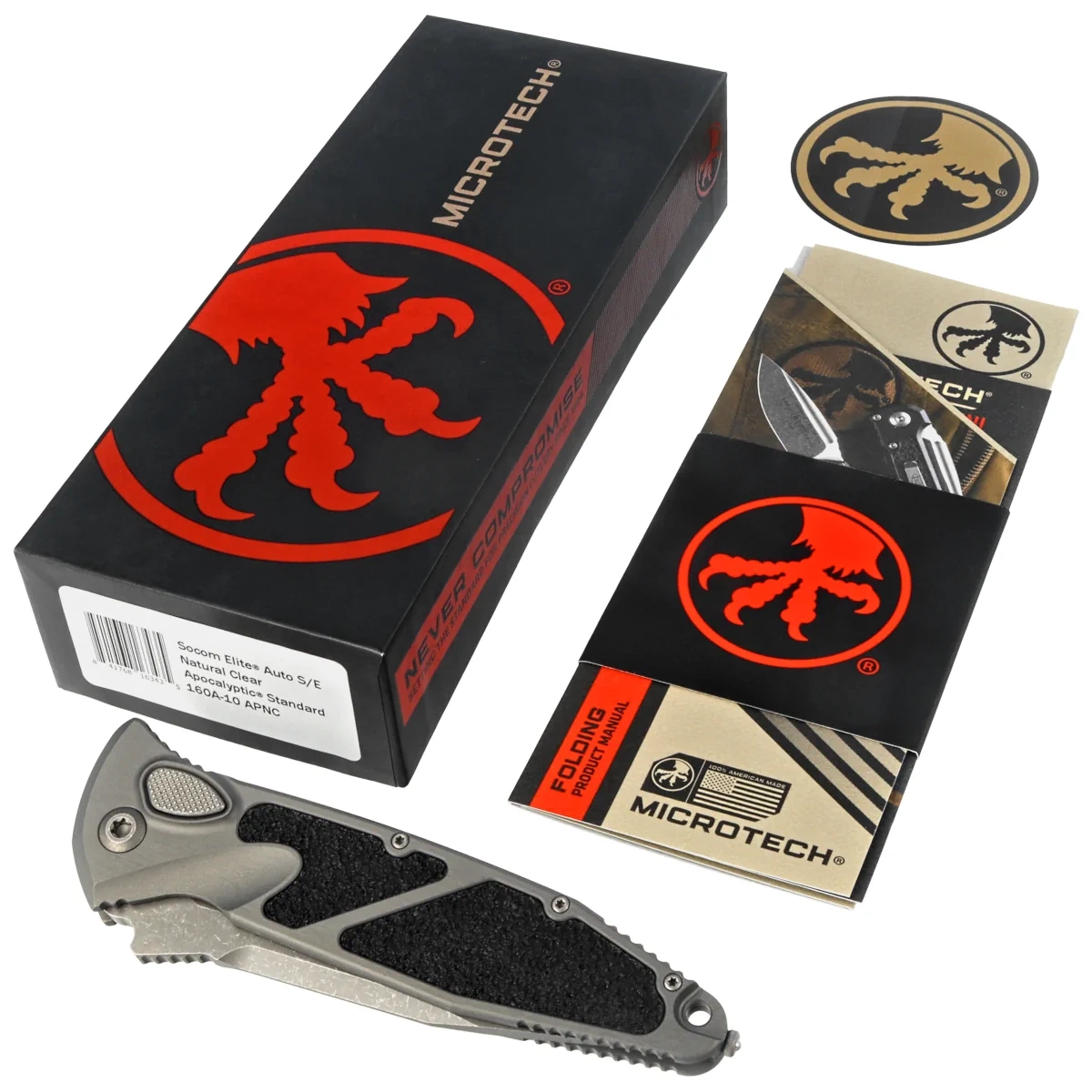 Nóż automatyczny Microtech Socom Elite Auto S/E Natural Clear Aluminium, Apocalyptic M390 by Tony Marfione (160A-10APNC)