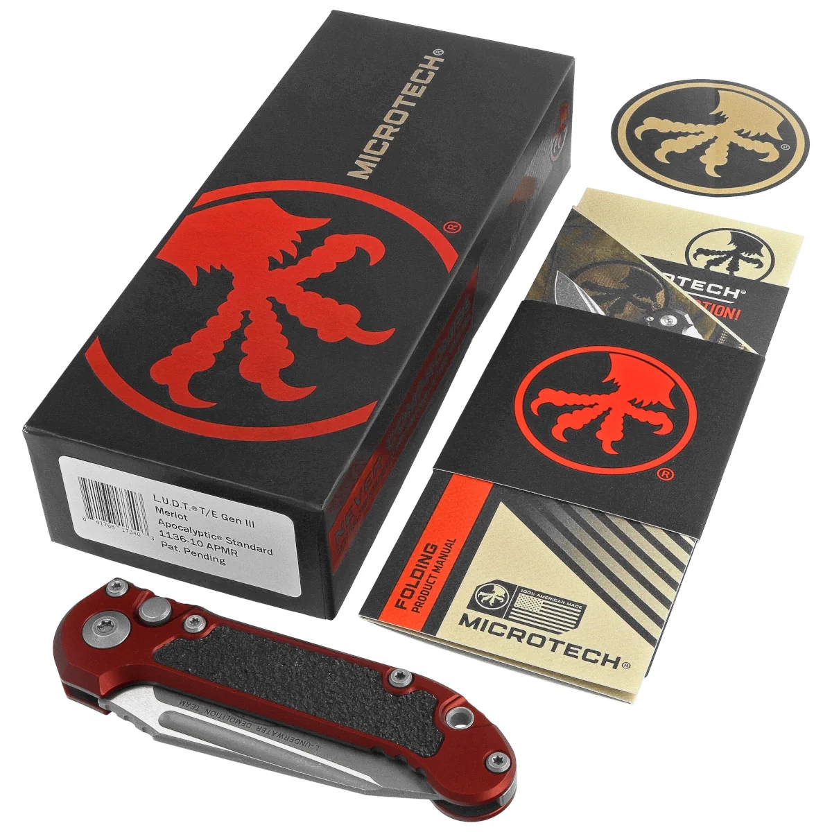 Nóż automatyczny Microtech LUDT Gen III T/E Merlot Aluminium, Apocalyptic M390MK by Tony Marfione (1136-10APMR)