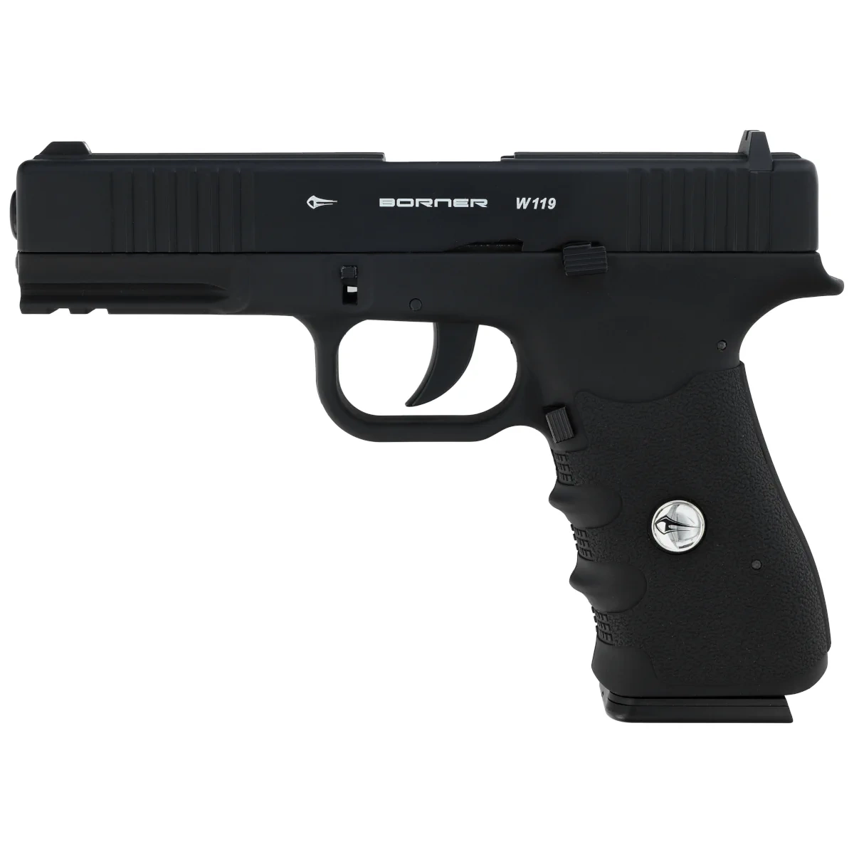 Borner W119 to solidnie wykonana wierna replika legendarnego pistoletu Glock 19, łącząca realistyczny wygląd z wysoką funkcjonalnością. Dzięki ruchomemu zamkowi w systemie blow back zapewnia realistyczne wrażenia podczas strzelania. Pistolet zasilany kapsułami CO