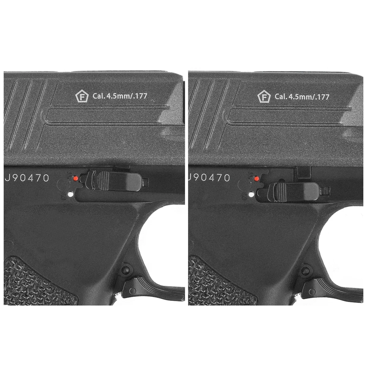 Zasilanie i działanie – pistolet korzysta z kapsuły CO₂ 12 g, co umożliwia oddanie ponad 60 strzałów kulkami BB kalibru 4,46 mm. Realistyczny system Blow-Back odwzorowuje działanie broni palnej, a po wystrzeleniu ostatniego pocisku zamek pozostaje w tylnym położeniu.