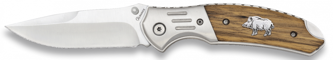 - Wild Boar Zebra Wood, Satin – klasyczny nóż składany marki Albainox z rękojeścią z drewna zebrawood i głownią ze stali 3Cr13MoV. Elegancka forma, blokada back lock i estetyczne wykończenie czynią z niego funkcjonalne narzędzie codzienne i outdoorowe.