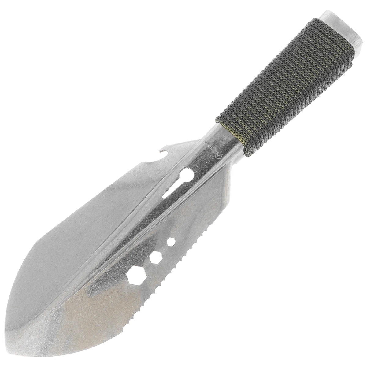 - 33543 Green Strung, Satin – kompaktowa łopatka survivalowa od Martinez Albainox z głownią ze stali nierdzewnej i rękojeścią oplecioną zielonym sznurkiem. Funkcjonalne narzędzie do zastosowań biwakowych, terenowych i przydomowych.