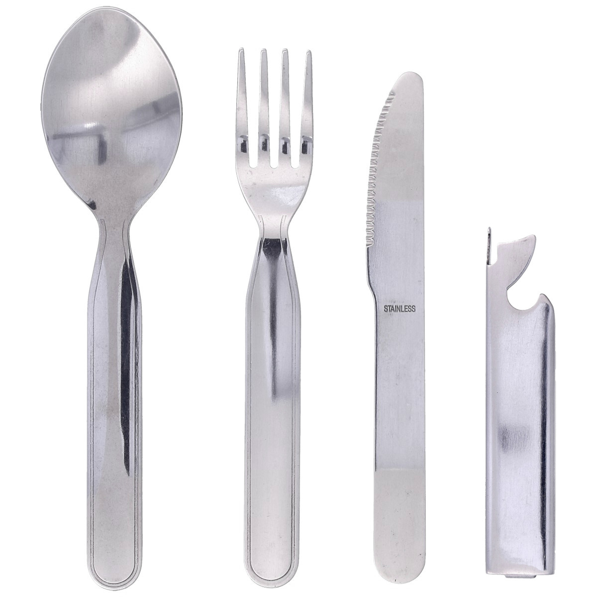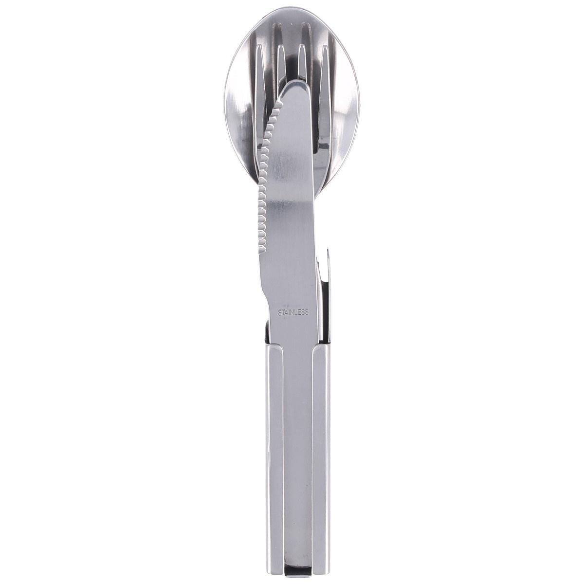 - Camping 4 Set Stainless, Mirror – kompaktowy niezbędnik turystyczny od Martinez Albainox wykonany ze stali nierdzewnej 3Cr13MoV. Zawiera nóż, widelec, łyżkę i otwieracz w praktycznym nylonowym etui – idealny zestaw na biwak i podróż.