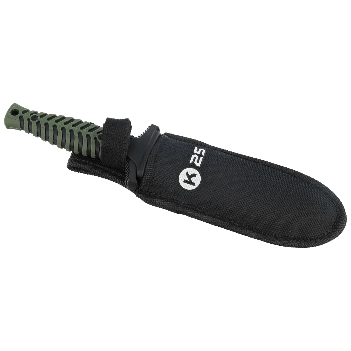 Rękojeść - wykonano z tworzywa ABS pokrytego antypoślizgową gumą, co zapewnia pewny chwyt w każdych warunkach – od błota po wilgoć. Lekka i ergonomiczna forma sprzyja intuicyjnej obsłudze noża, a subtelna tekstura poprawia kontrolę nad narzędziem. Kompaktowa budowa umożliwia wygodne noszenie przy bucie lub pasie, a pochwa nylonowa z systemem Quick Release gwarantuje szybki dostęp, nawet pod presją czasu. Model 32207 to praktyczne narzędzie taktyczne dla użytkowników oczekujących niezawodności, dyskrecji i efektywności działania.