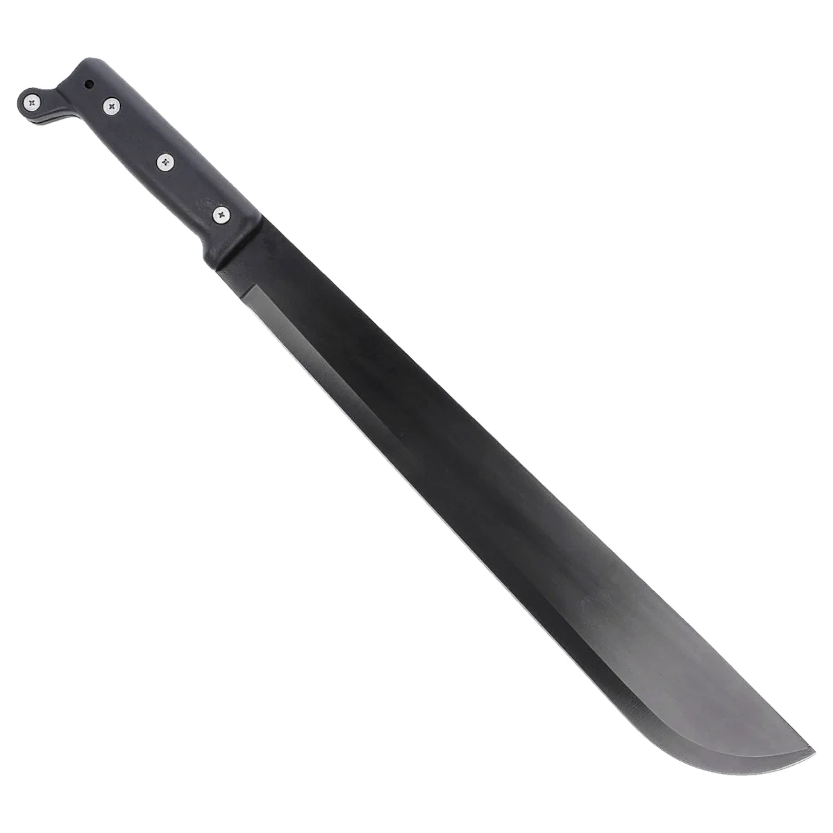 Głownia - typu Straight Back wykonana z nierdzewnej stali 3Cr13MoV, co zapewnia odporność na działanie wilgoci oraz łatwość ostrzenia w warunkach terenowych. Czarna powłoka ochronna poprawia odporność mechaniczną i zapobiega refleksom świetlnym. Prosty profil i pełny szlif płaski wspierają dynamiczne cięcia i zwiększają efektywność przy pracy z grubszą roślinnością. Długa krawędź tnąca umożliwia wykonywanie szerokich zamachów, a solidna geometria ostrza przekłada się na skuteczność w zadaniach wymagających dużej siły. Konstrukcja full tang zapewnia stabilność całego narzędzia i eliminuje ryzyko złamań w punktach łączenia.