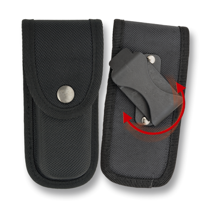 Etui zostało wyposażone w obrotowy uchwyt na pasek, który umożliwia mocowanie do pasa biodrowego, plecaka lub panelu MOLLE, zapewniając stabilność i wygodę noszenia. Zapięcie na zatrzask pozwala na szybkie otwieranie i bezpieczne zamknięcie, chroniąc zawartość przed przypadkowym wypadnięciem. Wewnętrzna przestrzeń pomieści większość standardowych folderów, multitooli oraz latarek taktycznych, oferując bezpieczne przechowywanie i transport w warunkach terenowych lub miejskich. Dzięki czarnemu, niskoprofilowemu wykończeniu, model 34080 dyskretnie integruje się z odzieżą codzienną i wyposażeniem outdoorowym. To solidny wybór dla osób, które oczekują prostoty, funkcjonalności i niezawodności w codziennym użytkowaniu sprzętu EDC – niezależnie od środowiska działania.