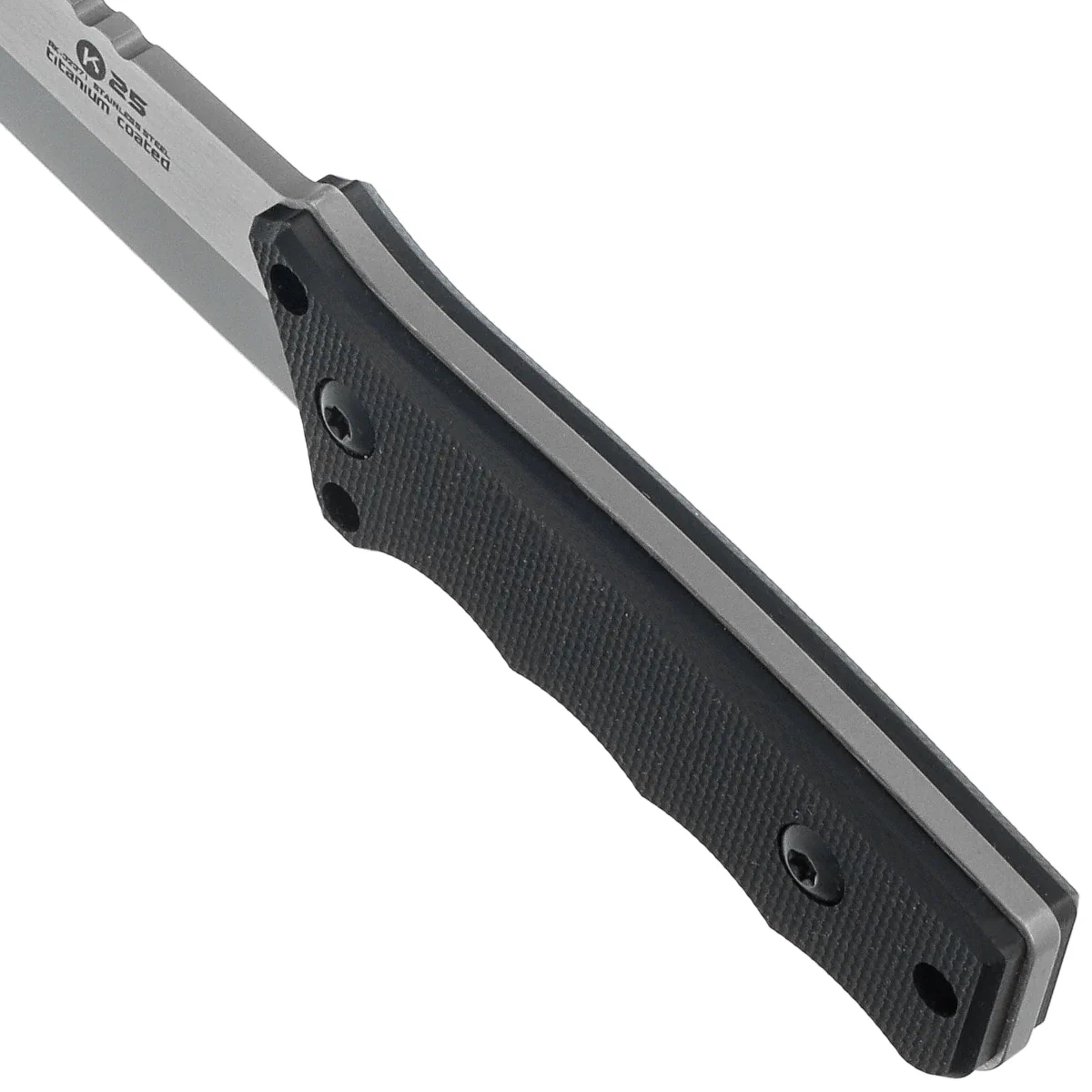- RK-32371 Tactical Neck Knife Black G10, Titanium – taktyczny nóż na szyję z konstrukcją full tang, ostrzem ze stali 7Cr17Mov pokrytym powłoką tytanową, rękojeścia z kompozytu G10 oraz pochwą Kydex z łańcuszkiem. Lekki i dyskretny.