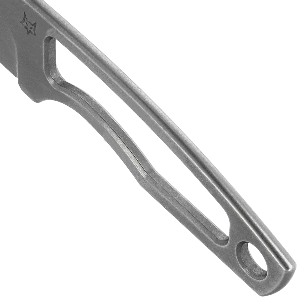 Rękojeść - w pełni zintegrowana w formie skeletonized full tang, wykonanej z jednego kawałka stali Niolox. Taka konstrukcja zapewnia maksymalną sztywność i wytrzymałość na uszkodzenia mechaniczne, eliminując słabe punkty w miejscach mocowania klasycznych okładzin. Starannie rozmieszczone otwory odciążające optymalizują wagę narzędzia przy zachowaniu jego pełnej funkcjonalności. Gładko wyprofilowane krawędzie rękojeści zabezpieczają dłoń przed otarciami, a ergonomiczne podcięcia wspierają naturalne ułożenie palców, umożliwiając pewny chwyt nawet bez dodatkowej tekstury. Konstrukcja umożliwia także zastosowanie oplotu z linki paracord, zwiększając komfort chwytu w zależności od preferencji użytkownika. W tylnej części uchwytu przewidziano otwór na linkę zabezpieczającą, który umożliwia montaż smyczy lub dodatkowego zabezpieczenia podczas pracy w trudnym terenie. Minimalistyczna forma rękojeści przekłada się na wysoką funkcjonalność oraz łatwość konserwacji, czyniąc model FX‑626 efektywnym narzędziem EDC o profesjonalnym charakterze użytkowym.