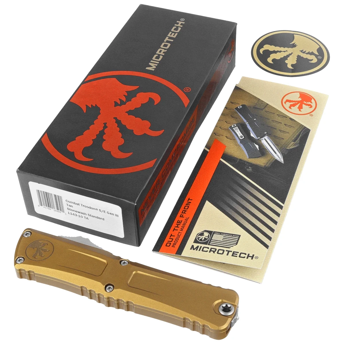 Combat Troodon OTF Line Troodon to po grecku "raniący ząb". Chociaż nazwa ta została po raz pierwszy nadana dinozaurowi podobnemu do Raptora, nazwa ta jest równie odpowiednia dla dużego noża OTF firmy Microtech, stworzonego z myślą o wszelakich zastosowaniach oraz do walki w zwarciu. Nóż automatyczny o ponadprzeciętnej wytrzymałości, pracujący w trybie D/A (Double Action) jest ulubionym OTFem wśród funkcjonariuszy organów ścigania, sił zbrojnych Stanów Zjednoczonych i personelu służb ratowniczych. Jego solidna konstrukcja sprawia, że Combat Troodon® nadaje się do intensywnego użytkowania, a zalety automatu Out The Front powodują, że jest również doskonałym nożem do codziennego noszenia.