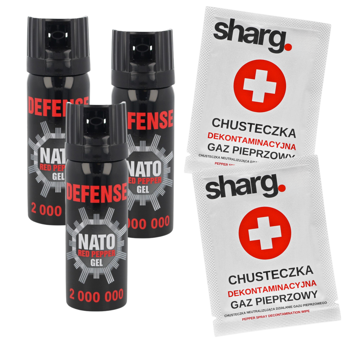 Zestaw 3x Gaz pieprzowy Sharg Nato Defence Gel 2mln Cone 50ml i 2x chusteczka dekontaminacyjna (40050-C)