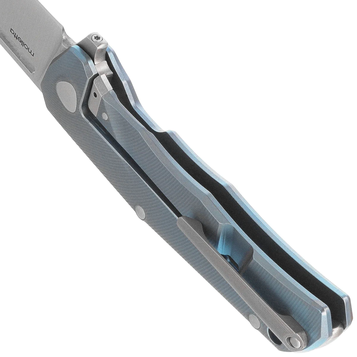 Q4ttro Blue Titanium, Satin to zaawansowany folder EDC zaprojektowany przez Michele „Molletta” Pensato – włoskiego knifemakera znanego z innowacyjnych rozwiązań. Konstrukcja modelu bazuje na eleganckiej, lekkiej ramie z tytanu 6Al-4V, wzbogaconej o wstawkę z kompozytu FatCarbon, co zapewnia nie tylko interesujący efekt wizualny, ale także zwiększoną chwytliwość. Sercem konstrukcji jest głownia ze stali proszkowej CPM MagnaCut, która łączy bardzo wysoką odporność na korozję z doskonałym trzymaniem ostrości i odpornością mechaniczną – cechy pożądane w narzędziach codziennego użytku o podwyższonej trwałości. Wykończenie satin dodaje całości technicznego, eleganckiego charakteru i ogranicza widoczność śladów użytkowania. Q4ttro wyposażono w innowacyjny system ReF (Removable Flipper), który pozwala użytkownikowi wybrać jedną z czterech form otwierania: klasyczny flipper, front flipper, otwór na paznokieć lub oburęczne rozkładanie. Mechanizm frame lock, ceramiczne łożyska i tytanowy klips deep carry dopełniają całości, czyniąc model Q4 wyjątkowo funkcjonalnym i ergonomicznie zoptymalizowanym narzędziem EDC klasy premium – dla najbardziej wymagających użytkowników.