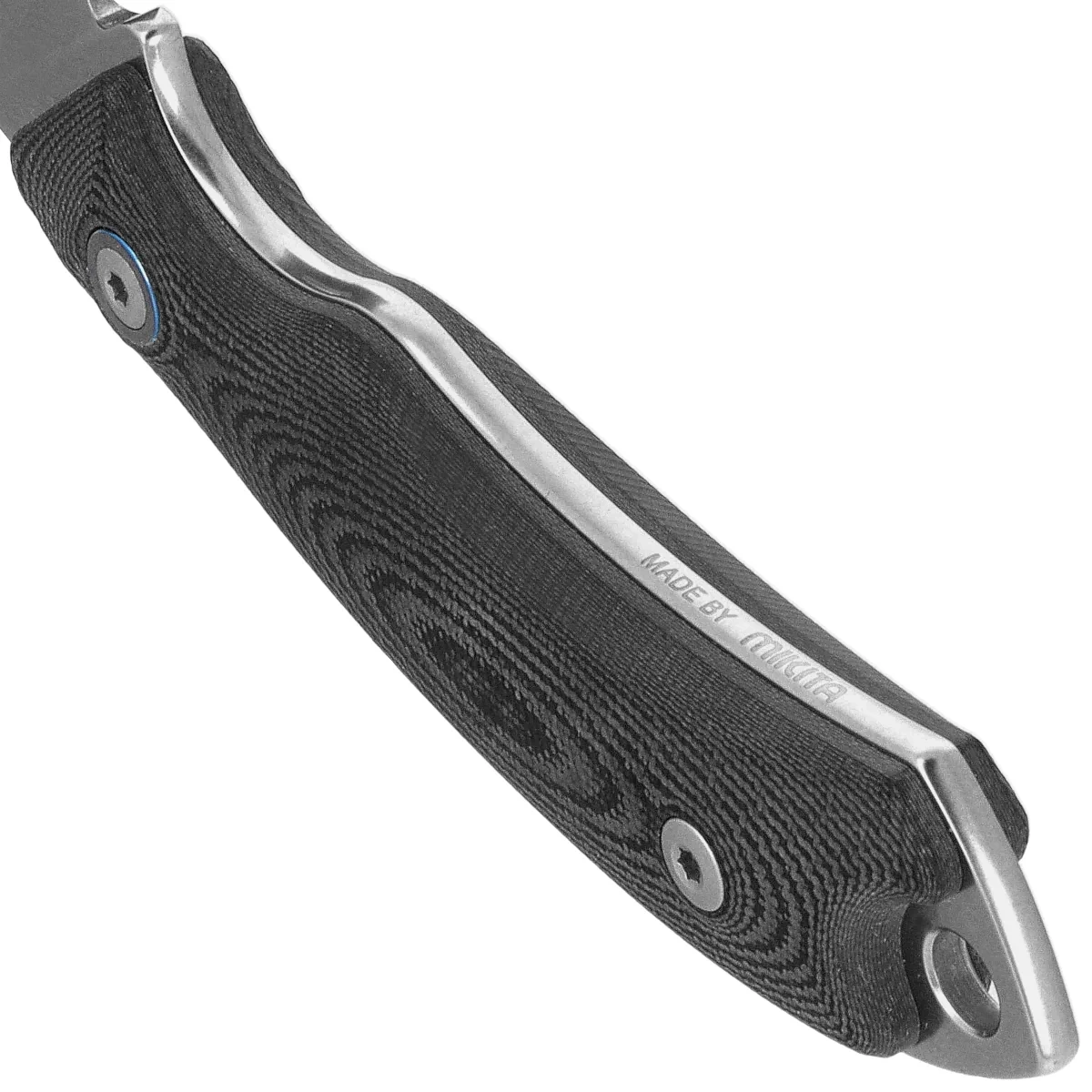 Rękojeść - wykonano z wytrzymałego laminatu G10, odpornego na wilgoć, zmienne temperatury i uszkodzenia mechaniczne. Delikatna faktura materiału zwiększa przyczepność, umożliwiając pewny chwyt również w trudnych warunkach atmosferycznych. Ergonomiczne profilowanie, zaokrąglone krawędzie oraz wycięcia na palce poprawiają kontrolę i komfort użytkowania przy dłuższej pracy. Konstrukcja full tang wspiera sztywność i trwałość noża, a otwór na linkę umożliwia montaż paracordu lub zawieszki. W zestawie znajduje się pochwa z naturalnej skóry z magnetycznym systemem zabezpieczenia, umożliwiająca dyskretne i wygodne przenoszenie w pozycji pionowej. Rękojeść modelu Pocket Tango 1 została zaprojektowana z myślą o praktyczności, wytrzymałości i wygodzie – będąc odpowiedzią na potrzeby użytkowników, którzy oczekują od noża niezawodności, precyzji i trwałości w każdych warunkach.