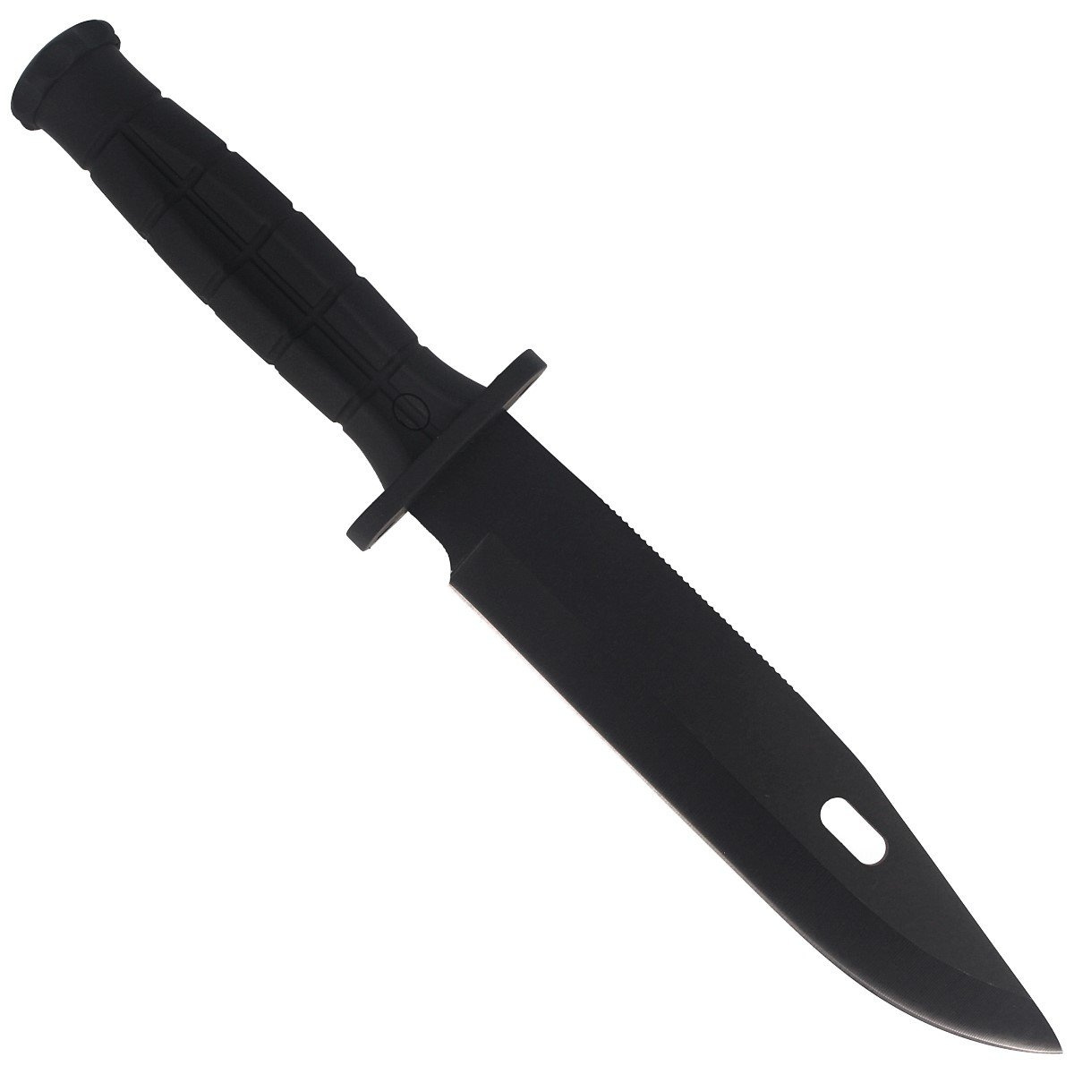 Rękojeść - z tworzywa sztucznego, cechuje się wysoką odpornością mechaniczną i dobrze leży w dłoni dzięki poprzecznym nacięciom oraz profilowaniu anatomicznemu. Symetryczny jelec zabezpiecza dłoń przed zsunięciem się na ostrze. Dołączona polimerowa pochwa z systemem mocowania do pasa pozwala na wygodne i bezpieczne przenoszenie noża w terenie.