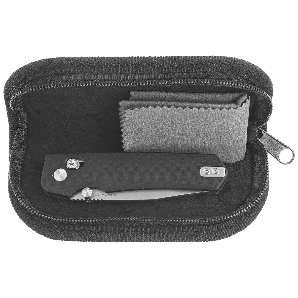 Głownia - o profilu drop point została wykonana ze stali nierdzewnej Sandvik 14C28N, znanej z odporności na korozjęi doskonałego utrzymania ostrości. Zastosowano szlif płaski (flat), który zmniejsza opór podczas cięcia i zwiększa efektywność ostrza. Powierzchnia została wykończona metodą Sandblasting która pozostawia eleganckie, matowe ostrze. Otwarcie noża umożliwiają obustronne thumb study, a płynność ruchu zapewniają ceramiczne łożyska kulkowe osadzone w obudowie. Całość blokowana jest za pomocą mechanizmu axis lock, który łączy lekkość obsługi z wysokim poziomem bezpieczeństwa.