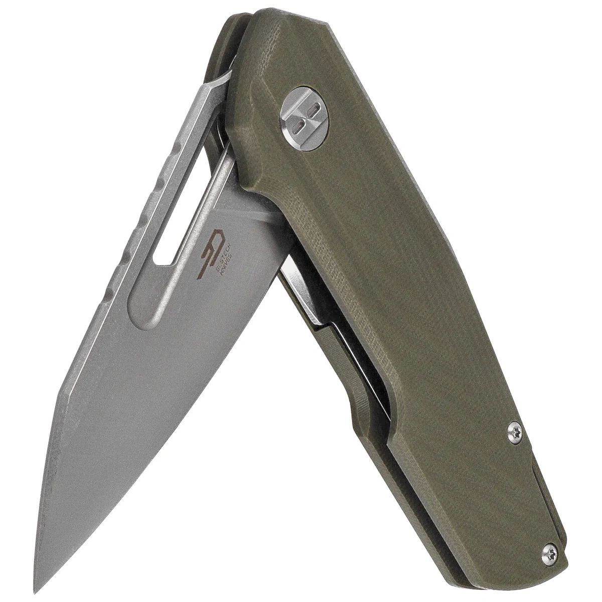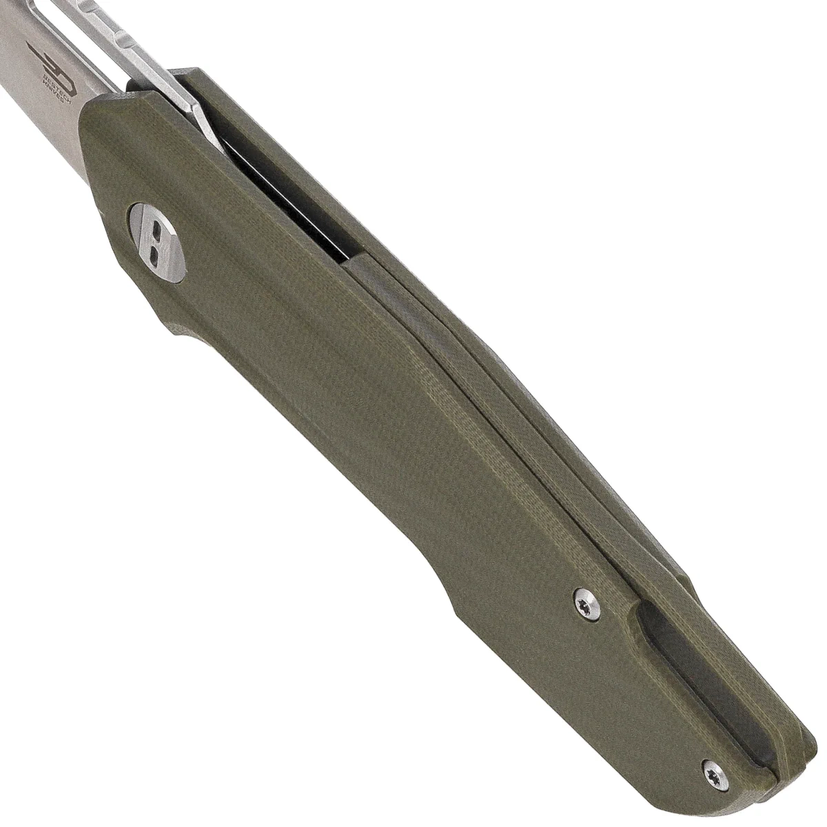 Toddler OD Green G10, Satin / Stonewashed marki Bestech Knives, zaprojektowany przez polskiego knifemakera Macieja Torbé, to zaawansowany folder EDC, w którym każdy detal został podporządkowany ergonomii, funkcjonalności i łatwości codziennego użytkowania. Niewielki rozmiar oraz dopracowana forma sprawiają, że nóż doskonale sprawdza się w miejskim środowisku – jako niezawodne narzędzie, ale też jako stylowy element codziennego ekwipunku. Głownia wykonana z stali nierdzewnej 14C28N oferuje wysoką odporność na korozję i dobre trzymanie ostrości przy zachowaniu łatwości ostrzenia. Profil wharncliffe z delikatnie podniesioną linią tnącą umożliwia precyzyjne operowanie ostrzem przy zadaniach technicznych. Wykończenie łączące powierzchnię satin na płazach z stonewashed w zagłębieniu tworzy atrakcyjny kontrast i zmniejsza widoczność śladów użytkowania. Otwór w głowni zapewnia wygodny, intuicyjny dostęp do ostrza, a konstrukcja oparta na łożyskach kulkowych gwarantuje płynną i bezwysiłkową pracę. Rękojeść została wykonana z G10, lekkiego i odpornego kompozytu o przyjemnej w dotyku fakturze i ergonomicznym wyprofilowaniu. Podcięcie pod palec oraz frezowanie na grzbiecie (jimping) poprawiają kontrolę nad nożem nawet podczas precyzyjnych zadań. Całość oparta jest na stalowych linerach, które pełnią funkcję wzmocnienia oraz elementu systemu liner lock. Klips deep carry oraz otwór na linkę dopełniają funkcjonalność noża, a personalizowany pivot z logo projektanta podkreśla unikatowy charakter tej konstrukcji.