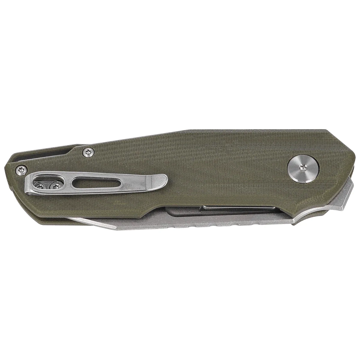- Toddler OD Green G10, Satin / Stonewashed, kompaktowy nóż składany zaprojektowany przez Macieja Torbé. Nowoczesny folder EDC z okładzinami z G10 i głownią ze stali 14C28N, łączący precyzję wykonania z funkcjonalnym designem i wygodą codziennego noszenia.