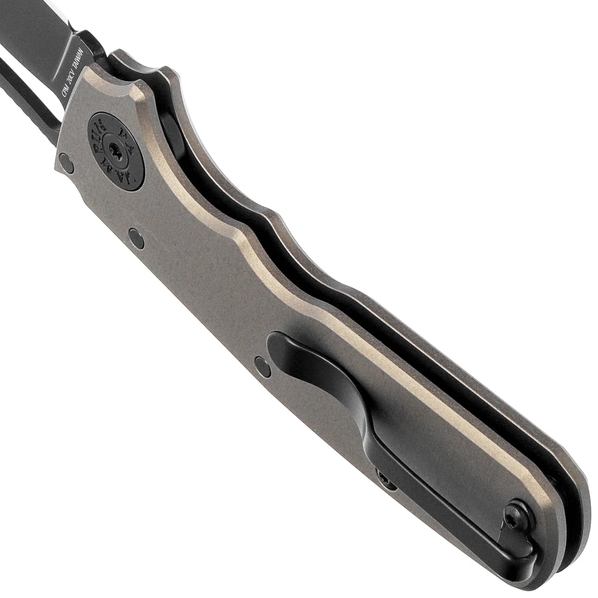 Rękojeść - okładziny z anodyzowanego aluminium oferują trwałość i niską masę, a ich teksturyzowana powierzchnia i fazowane krawędzie poprawiają chwyt i komfort obsługi. Ergonomiczne wycięcia pod palce wspierają kontrolę nad ostrzem podczas precyzyjnych zadań. Model wyposażono w klips deep carry, umożliwiający dyskretne przenoszenie w pozycji tip-up po lewej lub prawej stronie. Wewnętrzne stalowe linersy wzmacniają całą konstrukcję, a konstrukcja open back z tulejami dystansującymi ułatwia utrzymanie czystości. To praktyczne, a jednocześnie wyrafinowane narzędzie dla najbardziej wymagających użytkowników noży EDC.