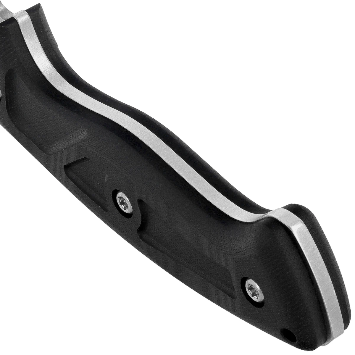• Venatus S Black G10, Satin Nitrogen – profesjonalny nóż myśliwski o konstrukcji full tang, z głownią typu drop point ze stali Nitrogen i ergonomiczną rękojeścią z kompozytu G10. Projektowany do intensywnego użytkowania terenowego w wymagających warunkach