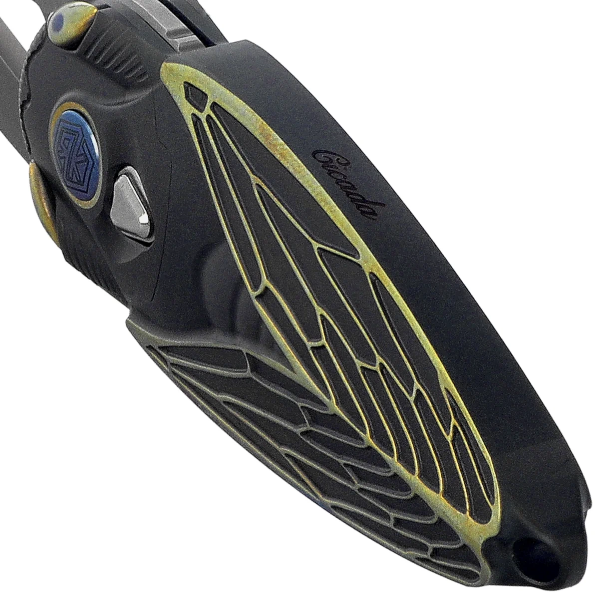- Cicada-DG Dark Gray/Gold Titanium, Bead Blasted – nowoczesny nóż składany premium od Rike Knife, z głownią ze stali M390 i frezowaną rękojeścią z tytanu. Biomechaniczna forma, kolekcjonerski charakter i techniczna precyzja w jednym projekcie.
