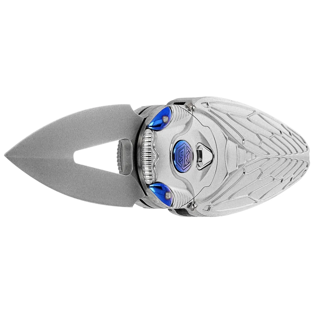• Cicada-P Grey Titanium, Bead Blasted – nowoczesny nóż składany premium od Rike Knife, z głownią ze stali M390 i frezowaną rękojeścią z tytanu. Biomechaniczna forma, kolekcjonerski charakter i techniczna precyzja w jednym projekcie.