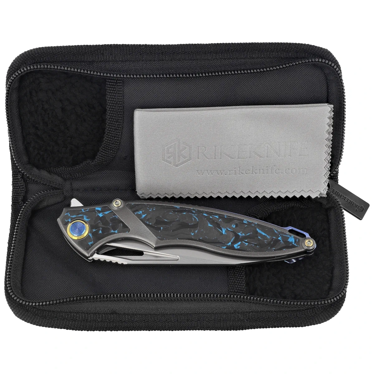 - RK 1902 B/CF Titanium/Blue Carbon Fiber, Bead Blasted – nóż składany klasy premium z głownią ze stali proszkowej Böhler M390, tytanowym szkieletem i wkładkami z Blue Carbon Fiber. Precyzja, styl i niezawodność w nowoczesnej konstrukcji EDC.