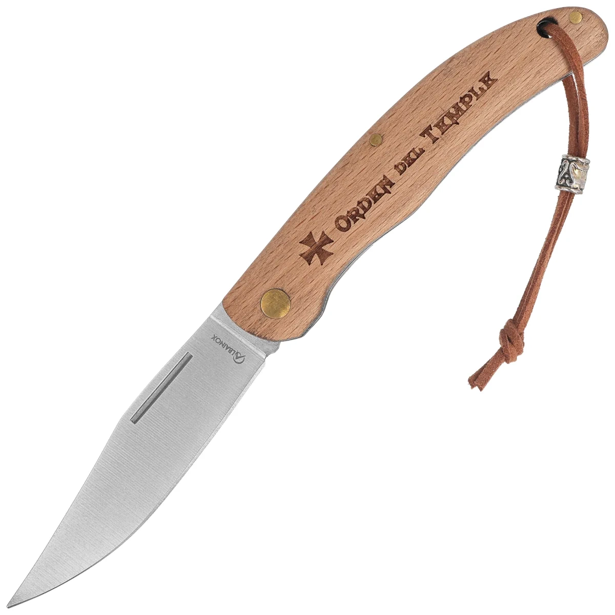 - Templarios Wood, Satin 3Cr13Mov – klasyczny nóż składany z głownią ze stali 3Cr13Mov o wykończeniu satin i rękojeścią z drewna bukowego ozdobioną symboliką zakonu templariuszy. Elegancja tradycji i styl kolekcjonerski w praktycznej formie EDC.