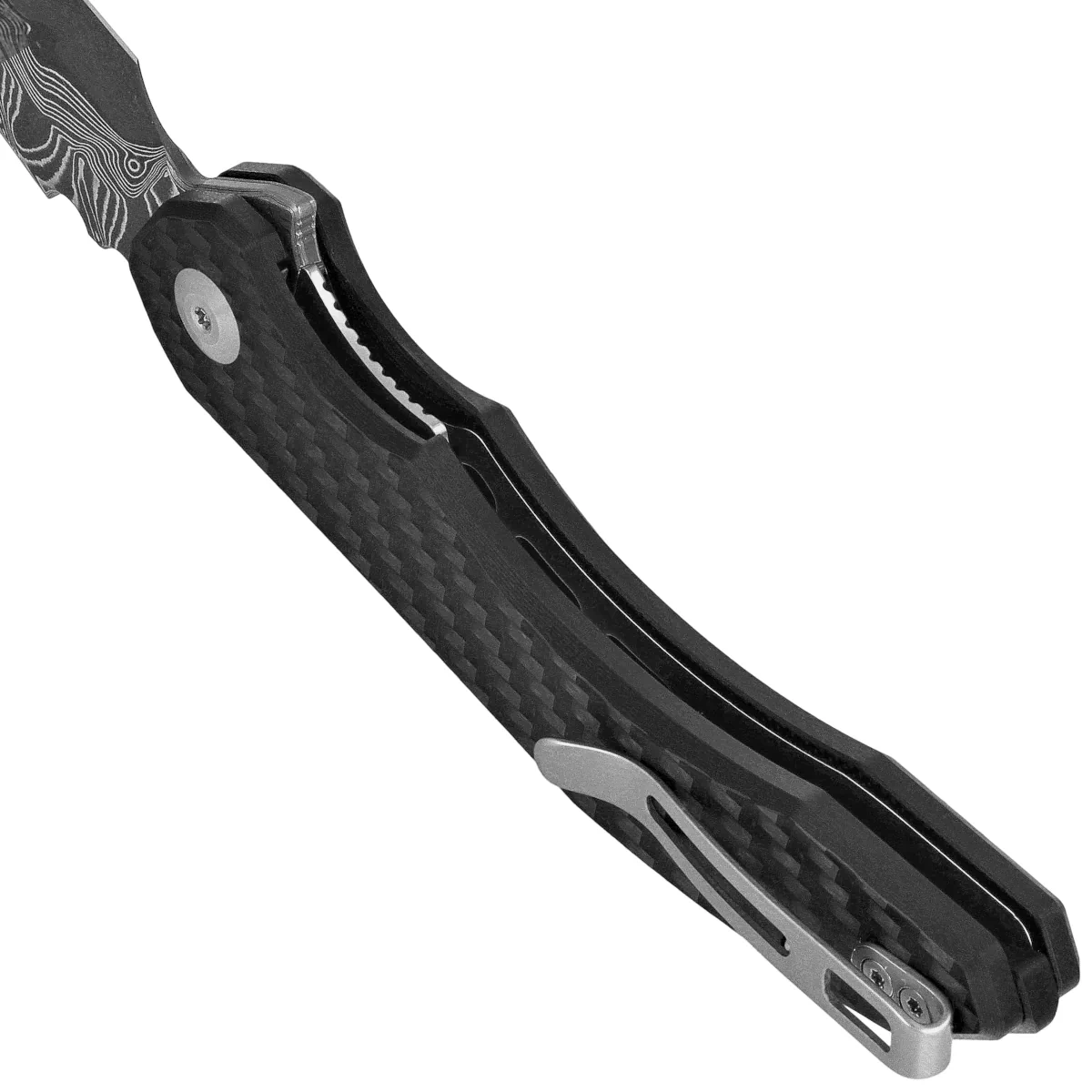 Bluetick Carbon Fiber Overlay on Black G10, Damascus nóż składany E.D.C., zaprojektowany przez Bryana Montalvo. Jego szeroka głownia wykonana jest ze stali Damascus gwarantującej doskonałą wytrzymałość i ostrość. Ergonomiczna rękojeść z kompozytu G10 zapewnia pewny chwyt, nawet w najtrudniejszych warunkach. Wyposażony w mechanizm blokady Nested Liner Lock, dający bezpieczeństwo podczas użytkowania. Niezawodny towarzysz, który zawsze będzie przy Tobie, niezależnie od sytuacji. Solidna konstrukcja i wysokiej jakości materiały gwarantują, że sprosta każdemu wyzwaniu. Niezależnie od tego, czy jesteś miłośnikiem outdooru, czy szukasz niezawodnego narzędzia do codziennych zadań, ten nóż jest idealnym wyborem.