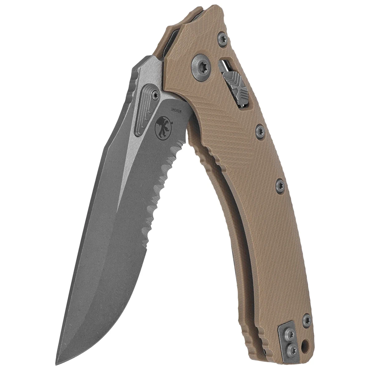 Nóż składany Microtech Amphibian Ram-Lok S/E Fluted Tan G-10, Apocalyptic P/S M390MK by Tony Marfione (137RL-11APFLGTTA)