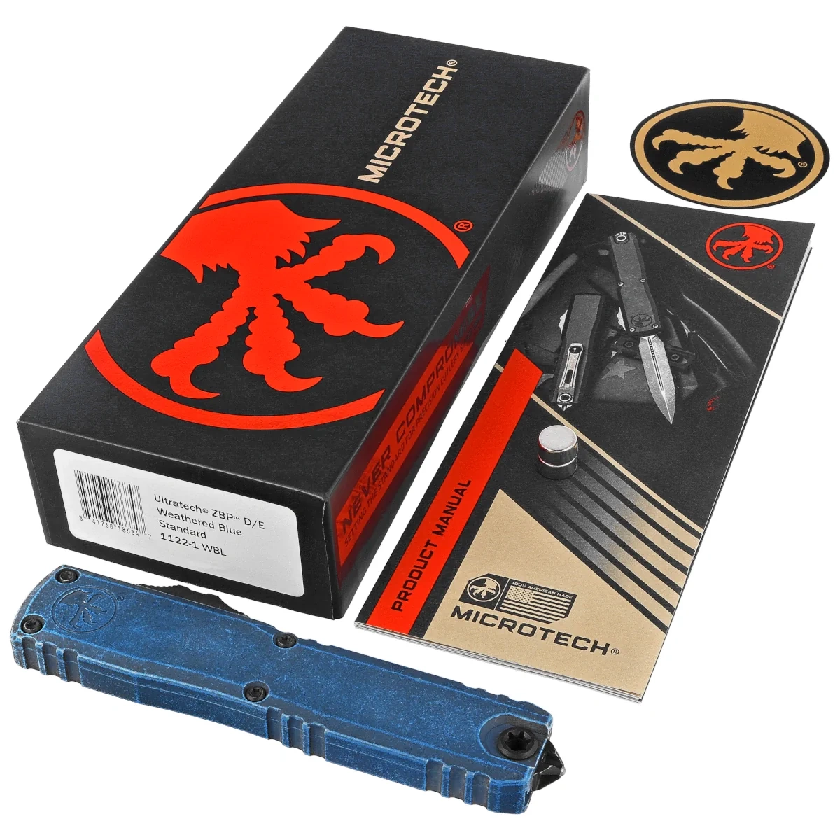 Nóż automatyczny OTF Microtech Ultratech Gen III ZBP D/E Cerakote Weathered Blue Aluminium, Cerakote Weathered Blue M390MK by Tony Marfione (1122-1WBL)