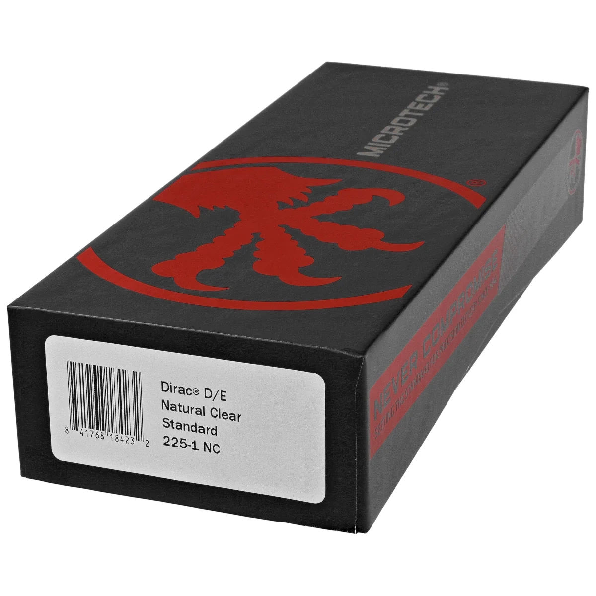 Dirac® - pierwszy automat OTF (Out The Front) D/A (Double Action) w ofercie Microtecha z suwakiem slidera umieszczonym w zagłębieniu rękojeści. Unowocześniona, ergonomiczna rękojeść z zakrzywionymi liniami podobnymi do HALO®. Zastosowano w tej linii charakterystyczne rozwiązania Microtecha® o ultra wysokiej jakości, takie jak opatentowane śruby, innowacyjny mechanizm wewnętrzny i zbijak do szyb. Przy całkowitej długości 7,25 cala, Dirac® doskonale się nadaje na nóż codziennego użytku (EDC).