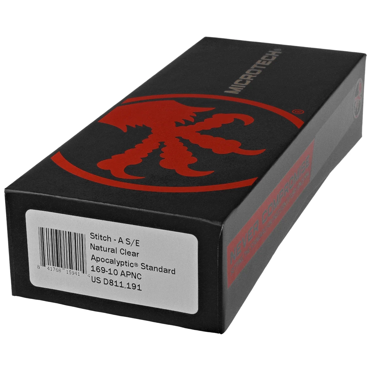 Stitch-A S/E Natural Clear Aluminium, Apocalyptic automatyczna wersja śmiałego projektu wszechstronnego noża taktycznego, efekt współpracy Sebastijana Berenji i firmy Microtech. Szeroka głownia i prosta, wygodna w każdym chwycie rękojeść dają mocny nóż taktyczny wykonany z dbałością o najdrobniejsze szczegóły i z najlepszych materiałów. Wierny towarzysz, który nigdy nie zawiedzie
