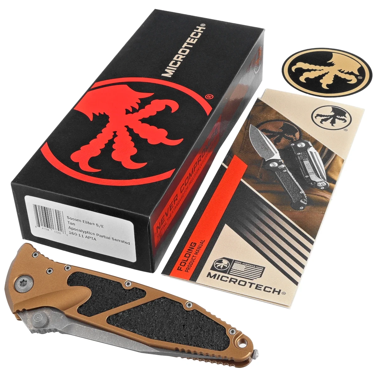 Nóż składany Microtech Socom Elite S/E-M Tan Aluminum, Apocalyptic P/S M390 by Tony Marfione (160-11APTA)