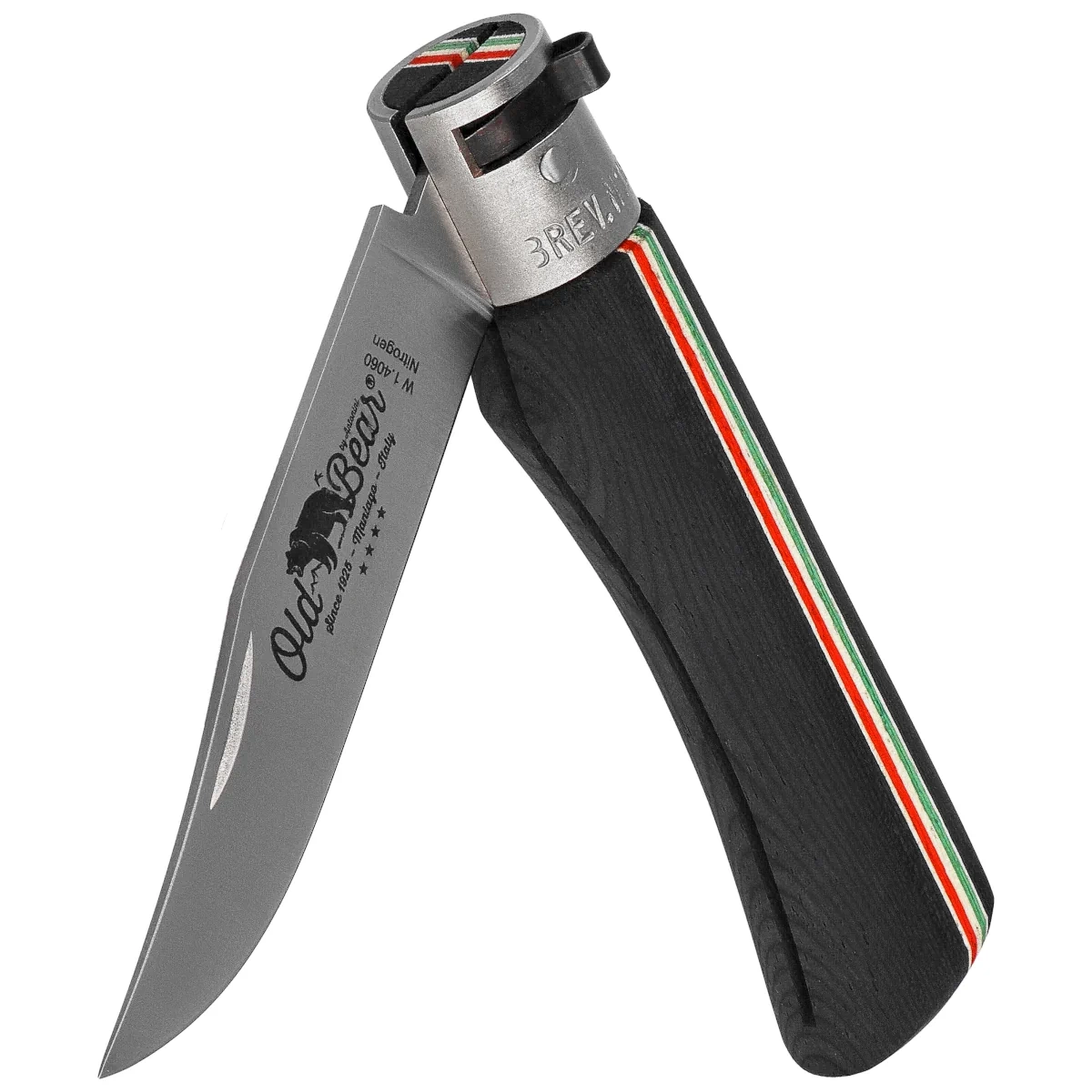 Nóż składany Antonini Old Bear World Italy L Laminated Black Wood, Satin W.1.4060 Nitrogen (9307/21_MTK)