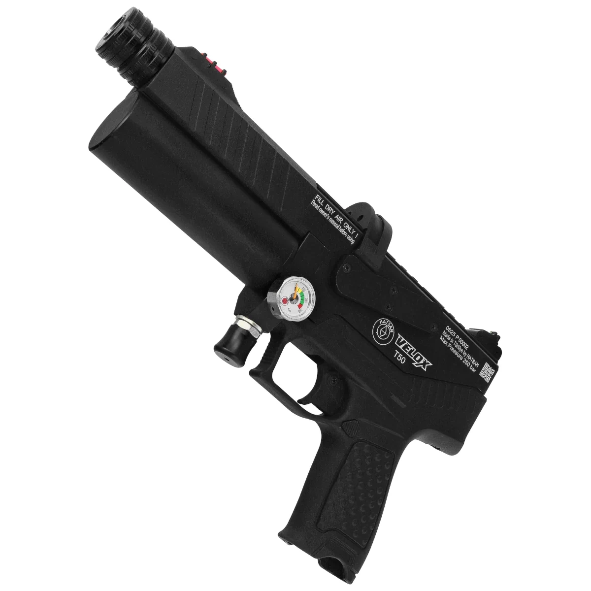 - Velox T50 w kalibrze .50 to rewolucja w broni RAM. Pierwszy pistolet do samoobrony na kule gumowe w wersji PCP. System Semi Auto, czyni do idealnym do dynamicznego strzelania. Dwa kartusze 50 cc napełniane do 250 barów pozwalają oddać nawet 40 strzałów.
