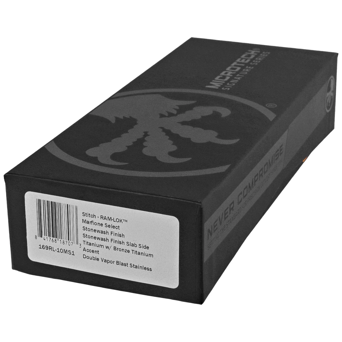 Nóż składany Microtech Marfione Select Stitch Ram-Lok S/E Titanium, Double Vapor Blast HW, Stonewashed M390MK by Borka Blades and Tony Marfione (169RL-10MS1)