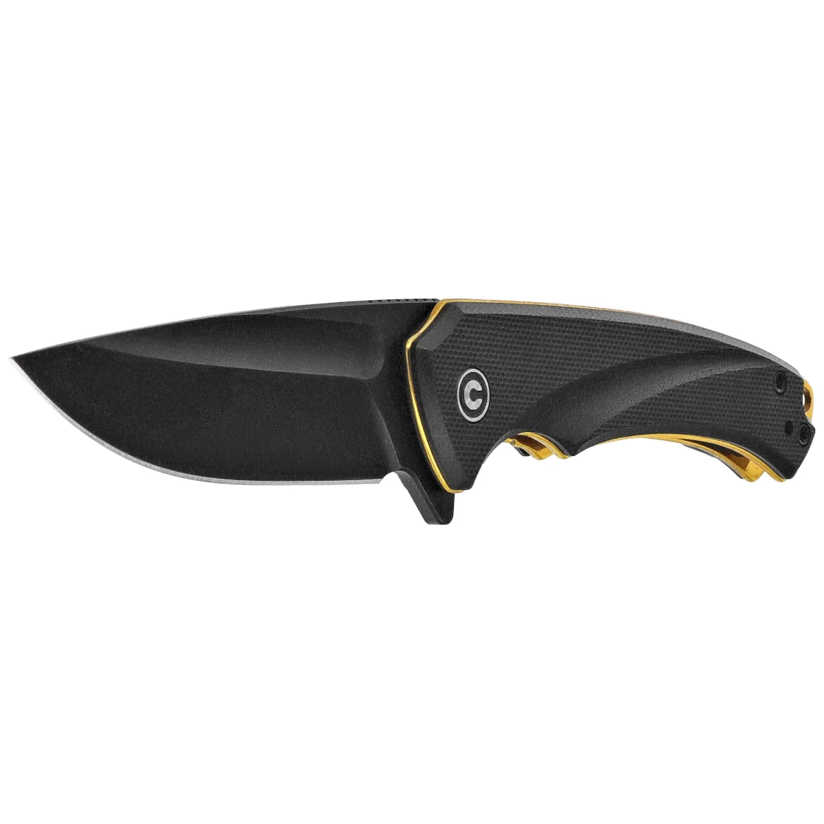 - Voidflare Black G10, Black Stonewashed – elegancki nóż składany EDC z ostrą i wytrzymałą głownią ze stali 14C28N, osadzony na lekkiej i teksturowanej rękojeści z kompozytu G10. Złote detale i dynamiczna linia podkreślają nowoczesny styl.