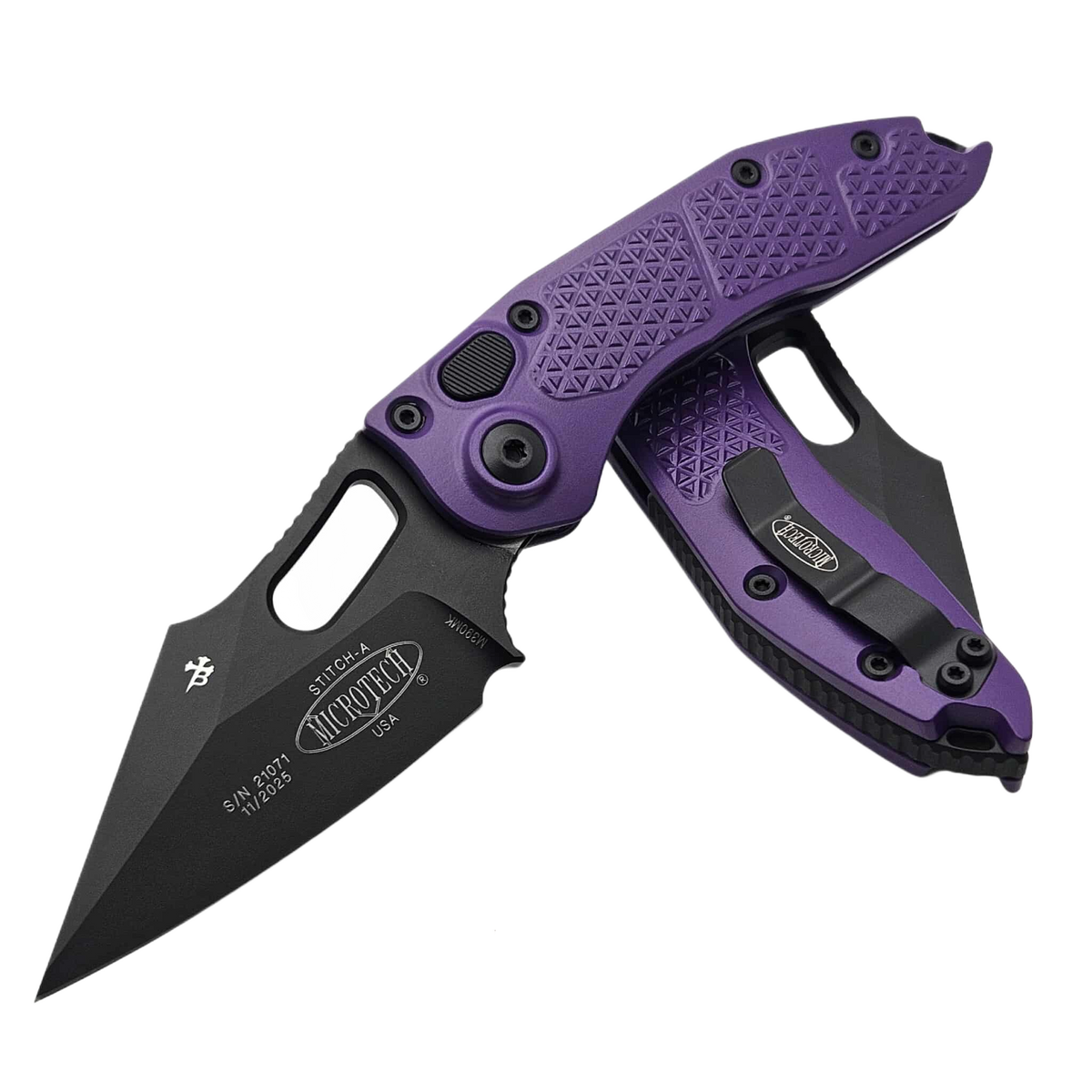 Nóż automatyczny Microtech Stitch-A S/E Tactical Purple Aluminium, Black M390 by Borka Blades and Tony Marfione (169-1PU)