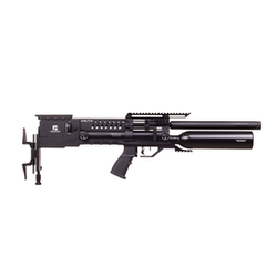 Reximex Meta Plus, a modern bullpup multi-shot PCP rifle featuring an enlarged air cylinder, Side Lever cocking mechanism, regulator, monopod, 3D butt pad, and a barrel with an integrated sound moderator. Available in calibers: 4.5 mm, 5.5 mm, 6.35 mm