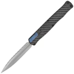 Cleric II D/E Carbon Fiber/Black Aluminium, P/S Stonewashed. An OTF automatic knife that stands out among the rest. D/A working automatic with a slim profile with super smooth opening and closing action. Customized by Tony Marfione Jr, Heretic Knives