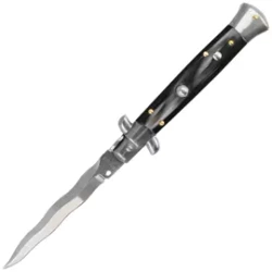 Frank Beltrame Kris Black 23cm. Cult Italian spring knife hand-folded grips imitating buffalo horn. Folder when opening the hundredths of a second blade emits a distinctive click that distinguishes it from other spring knives