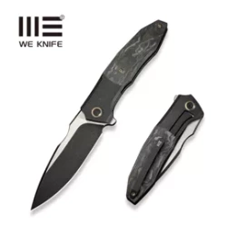 WE-Guthrie Black Titanium/Rose Carbon Fiber, Black Stonewashed, a large EDC folding knife designed by Jason Guthrie. Comfortable Handle with titanium bolsters and carbon fiber, utilitarian 20CV CPM steel Blade, strong construction.