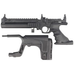 Jet 1 4.5mm - precision PCP sports air pistol designed for target shooting and recreational use. Equipped with iron sights, a mounting rail, and a 40cc air tank and grip that allows for stock attachment. Once stock is attached, it transforms into carbine.